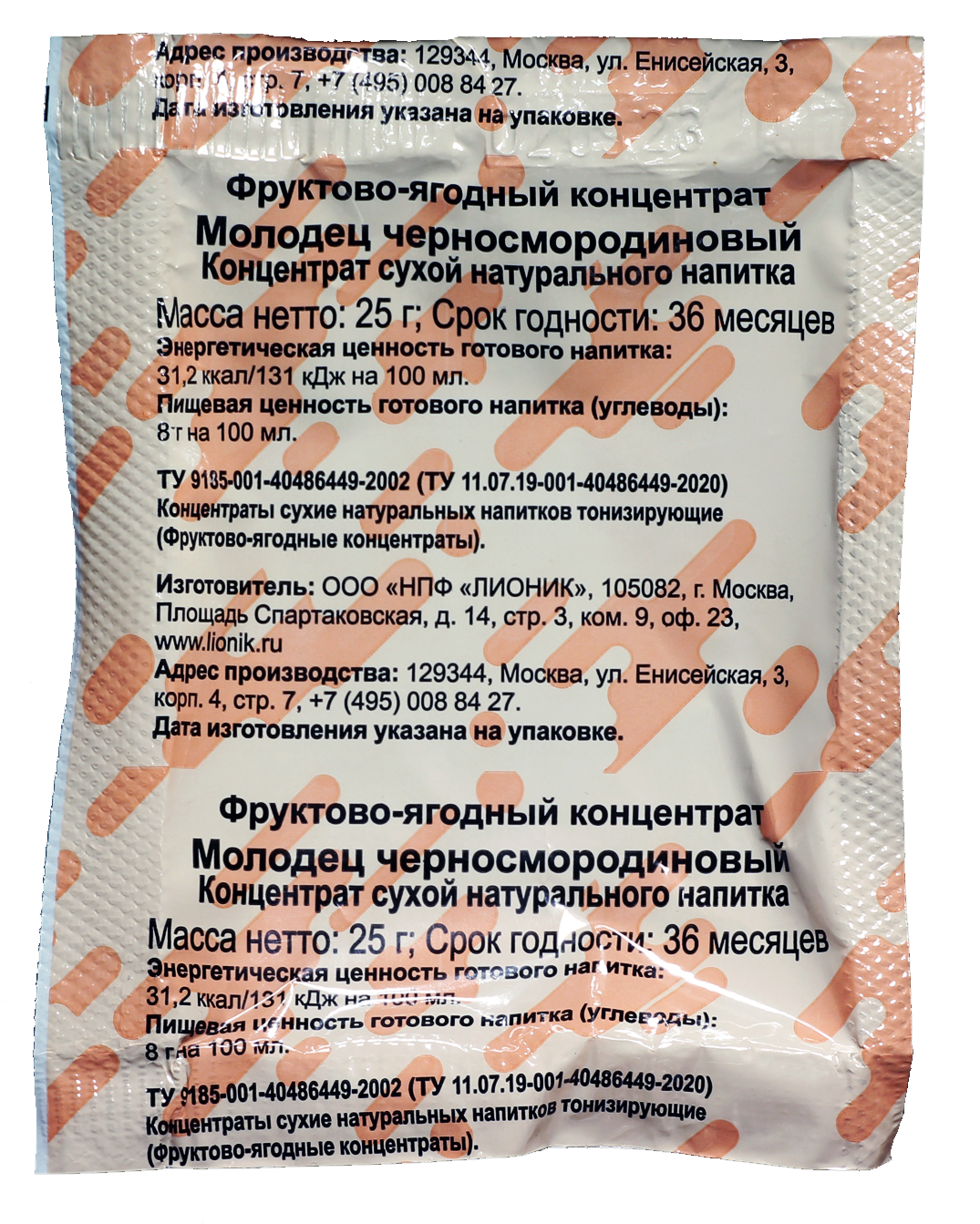 Сахар белый свекловичный, экстракты-концентраты яблочный и шиповника; экстракты черной смородины и прополиса; крахмал картофельный; стабилизаторы - желатин пищевой; регулятор кислотности - кислота лимонная Е330; антиокислитель - кислота аскорбиновая Е300; ароматизатор «Черносмородиновый». ТУ 9185-001-40486449-02